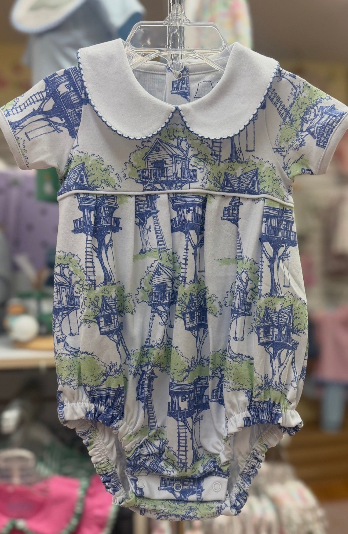 Introducing the Canopy Club Pleated Bubble—a charming one-piece designed for little ones who love to make a splash! This playful romper features a classic pleated collar and structured bubble silhouette that keeps your baby boy looking dapper while staying comfortable for all-day wear. The cheerful Canopy Club print adds a fun, whimsical touch perfect for playdates, family gatherings, or everyday adventures. Soft, breathable fabric ensures he stays cozy, while the thoughtful design makes diaper changes and dressing a breeze. A timeless piece that's as practical as it is adorable!